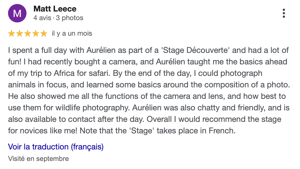 Un stage pour découvrir la photo animalière, pour ceux qui n'ont aucune notion en photo.